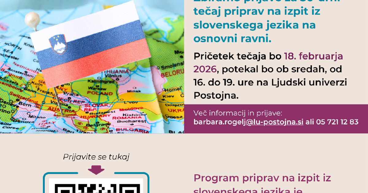 Vabljeni na 30 urni tečaj za pripravo na izpit iz slovenskega jezika.